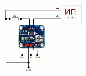 Для проверки работы платы на микросхеме INA219 была собрана следующая схема.