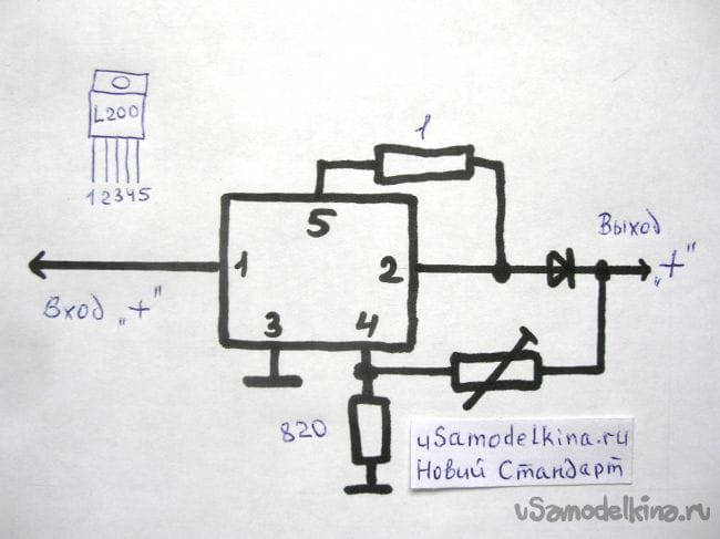 - сопротивление подстроечное до 2,2 кОм (после установки нужного напряжения заменится обычным до 0,25 Вт);