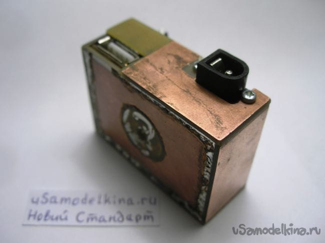 Этап 10. Производим из медной пластинки уголки для закрепления латунной крышки на корпус. Электролит припаян именно сейчас сверху, так как он может выходить из строя, так легче выпаивать, заменять: