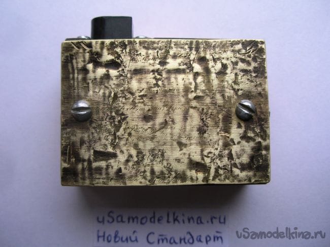 Этап 9. Верхнюю крышку устройства изготавливаем из латунной или медной пластинки размером 37х53мм: