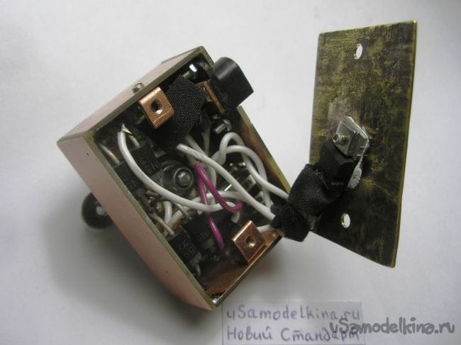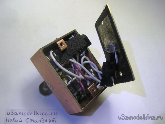 Этап 8. Готовим боковую стенку для установки гнезда для подключения штекера генератора. Гнездо к стенке прикрепляем винтами М2 или М3: