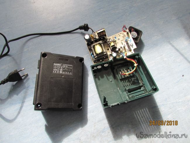 От зарядки отрезаем шнур питания и клемник для батареек . Плату в ящик.