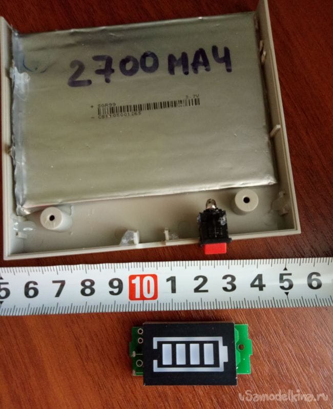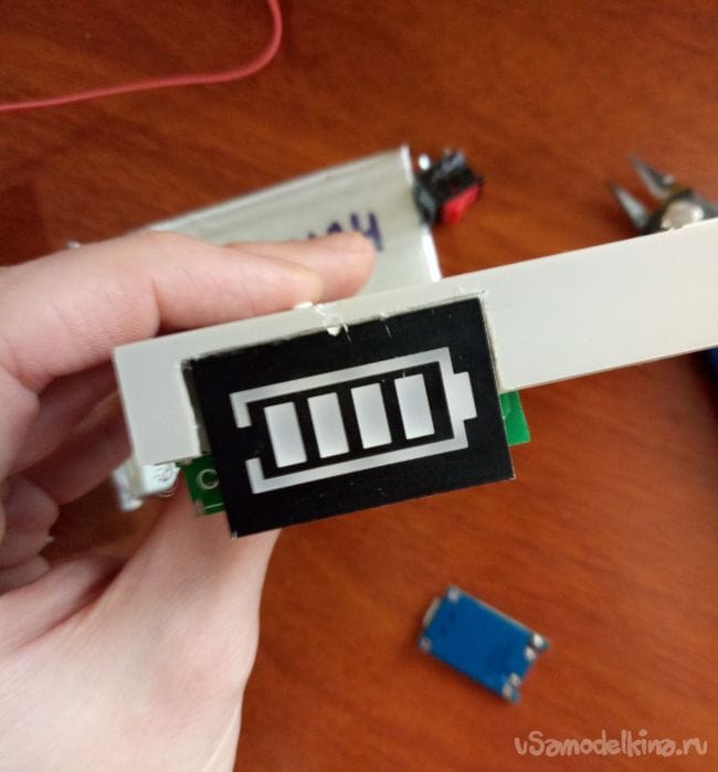 Слева я решил вставить модуль индикатора уровня заряда аккумулятора.