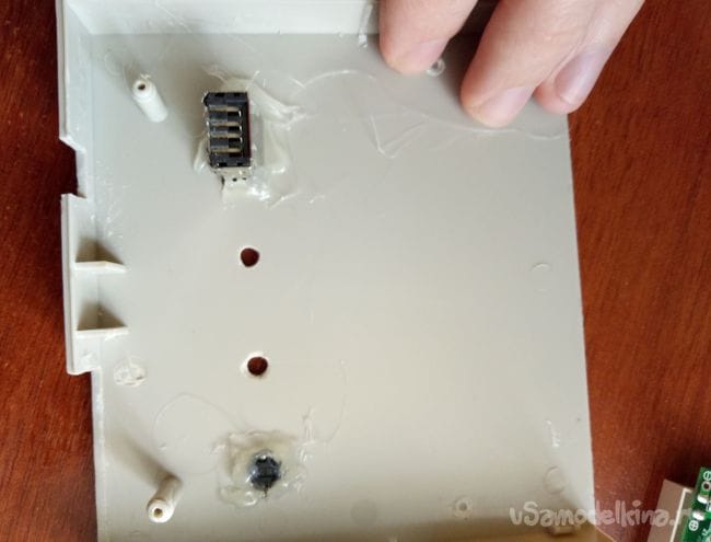 Посередине была выемка и в нее идеально вписался разъем micro usb на плате, через него будет подключаться зарядное устройство.
