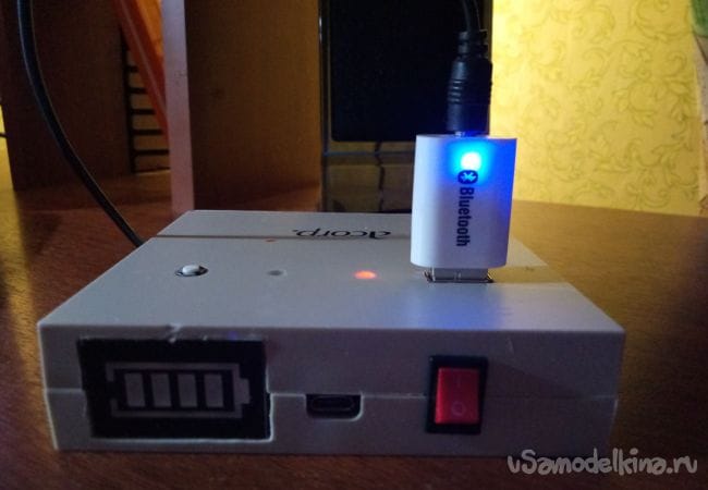 Питается он от 5 вольт, в работе потребляет ток порядка 5-10 мА, повербанки не распознают такую нагрузку и просто не включаются. Судя по отзывам интернет магазина, такой гаджет приобретается в основном автомобилистами для подключения к автомагнитоле, не имеющей технологии Bluetooth, в таком случае питание берется от usb разъема магнитолы. Я же планирую использовать его дома, подключив к колонкам через aux. Для того чтобы не было лишних проводов (в том числе и для питания Bluetooth адаптера) было принято решение собрать powerbank специально для этого устройства.
