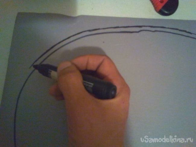 По верхней получившейся части размечаем вторую часть, обводя по краю маркером, добавляем примерно 5 мм и делаем ещё полосу + - 2 мм (точность здесь не особо важна, так как будет корректироваться, с точным размером должны быть верхняя и нижняя часть), это будет край 2 -ой части и отрезаем лишнее.