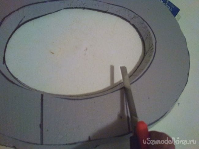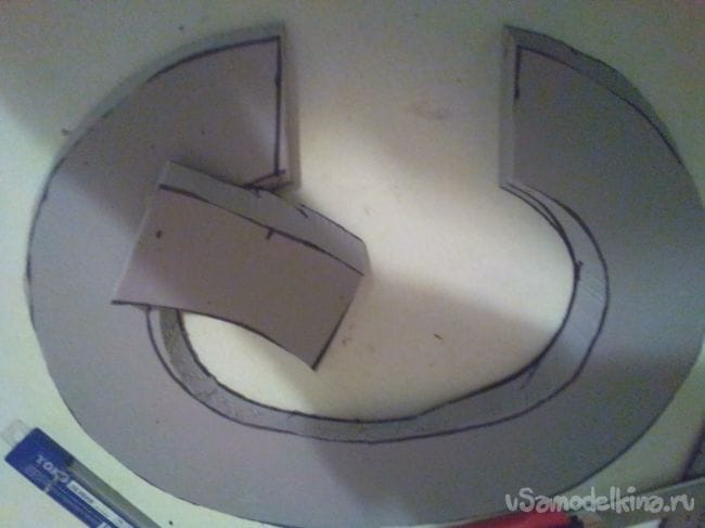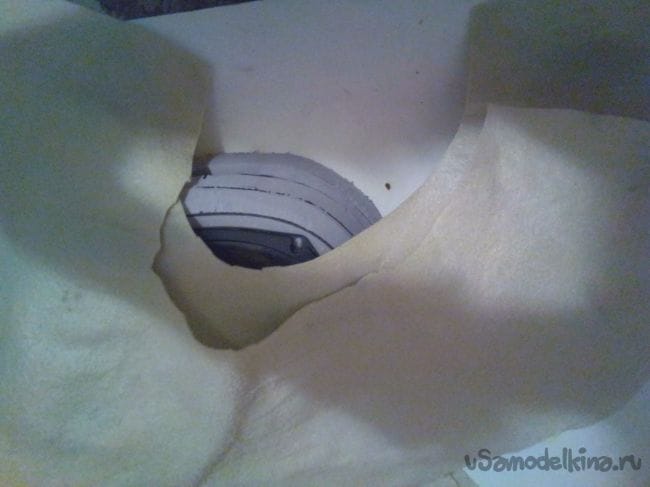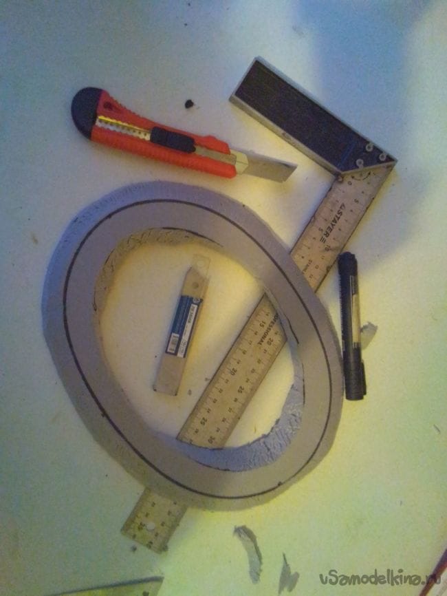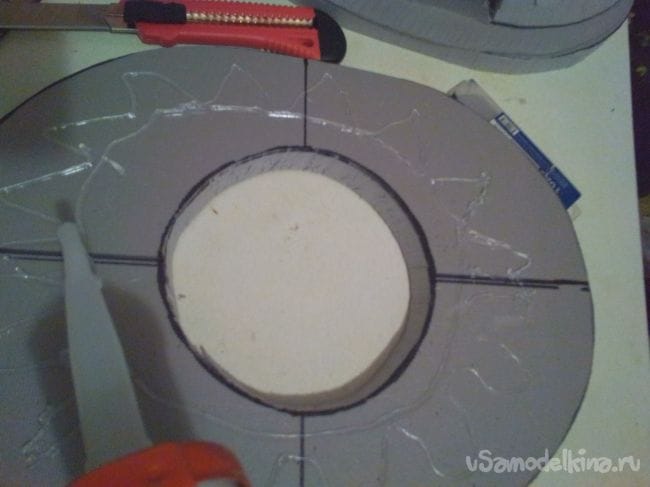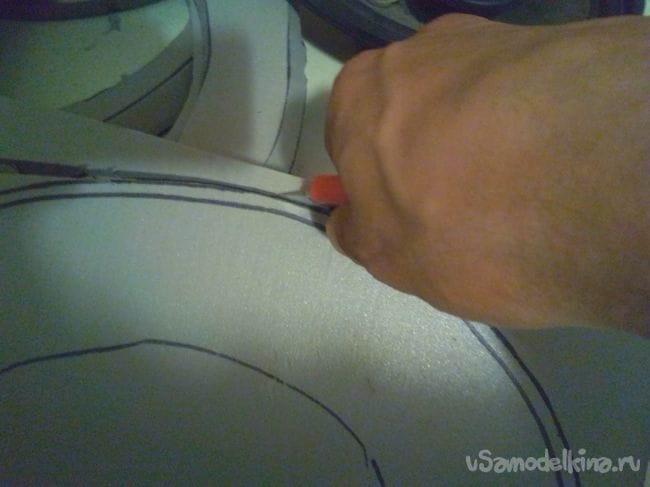 На средней части необходим удалить часть пенопласта(предварительно разметив), следующем образом