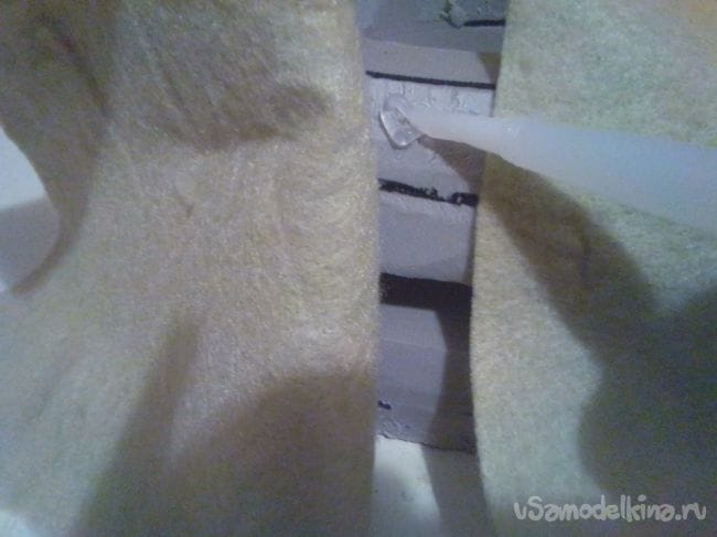 Если получилась примерно нужная форма (не пугаемся неказистого вида), приступаем к склейке элементов. Клеить будем силиконом, так как клей может разъедать пенопласт, конечно возможна склейка клеем на водной основе, но на силиконе конструкция будет более эластичной («живой»), что способствует наиболее хорошему звуку...