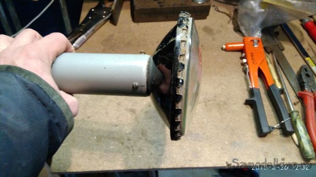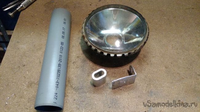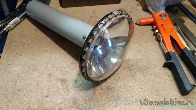 В гараже нашёл завалявшуюся фару, по моему от автомашины Запорожец. Мною было принято решение пустить её в дело, чтобы можно было крепить в любое место для подсветки.