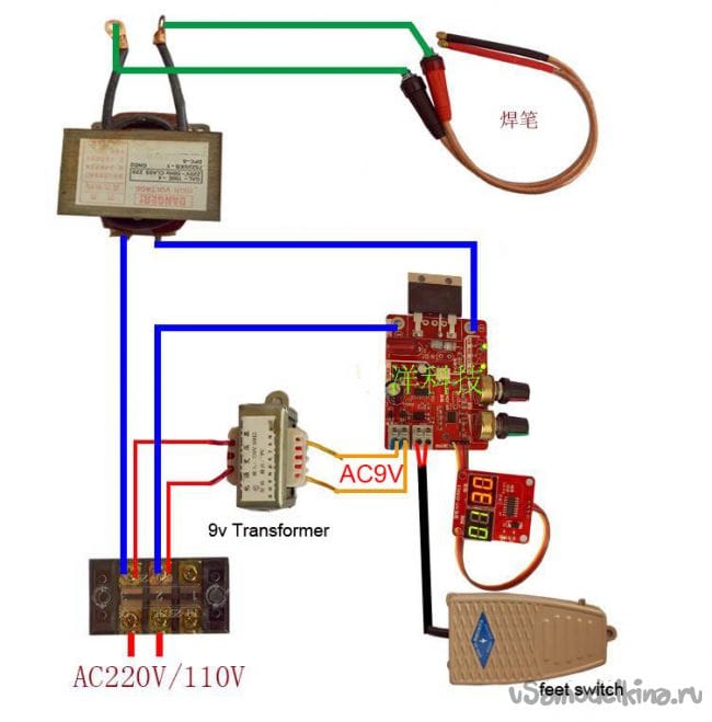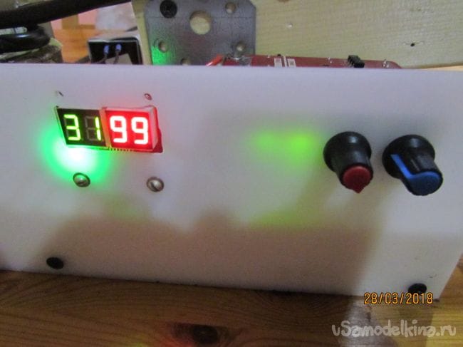 Цифровой блок сварки зелёная ручка это время сварки в секундах а красная ручка это сила тока.