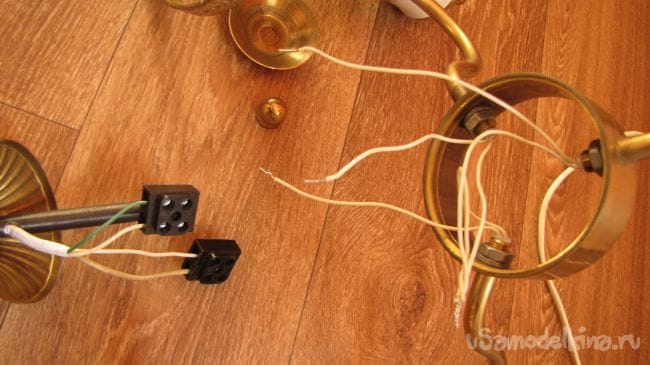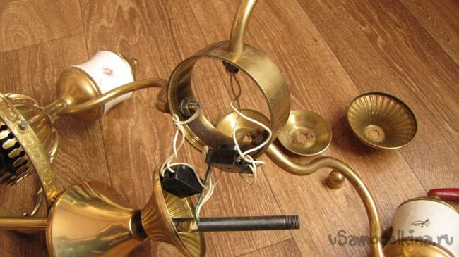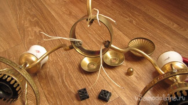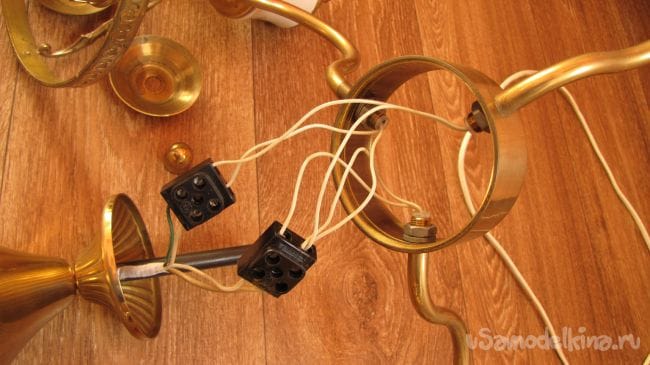 Если люстра служит долго, то лучше всего будет полностью перебрать всю проводку внутри. Разобрать патроны для лампочек и протянуть контакты.