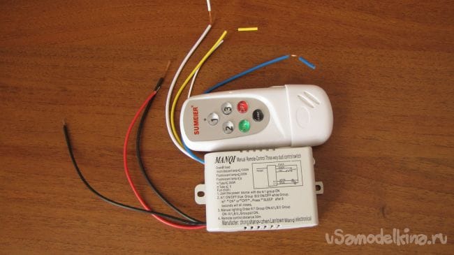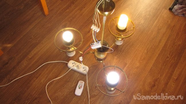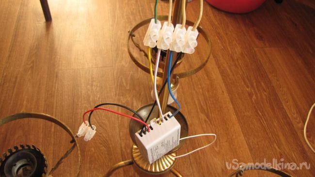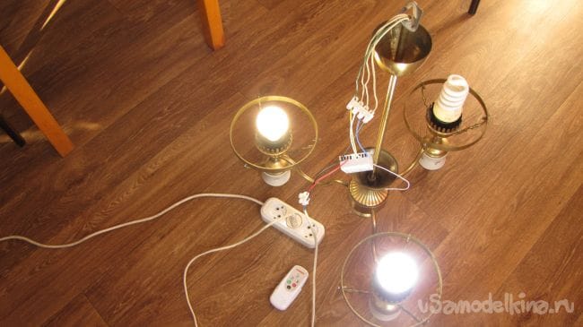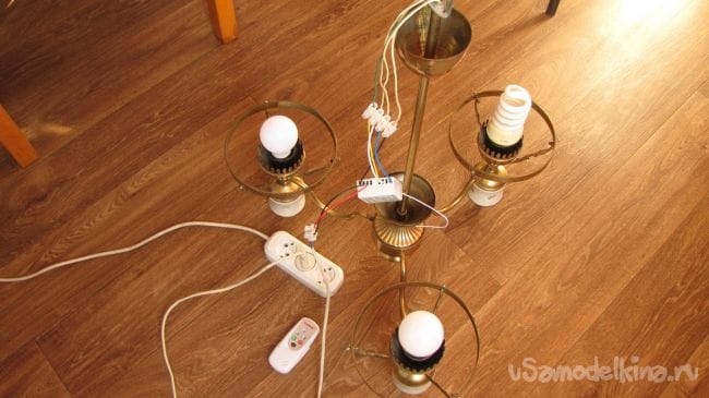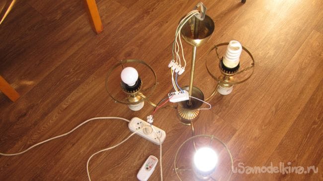 Достаточно будет в схему люстры добавить релейный блок на радио управлении и немного изменить проводку внутри люстры.
