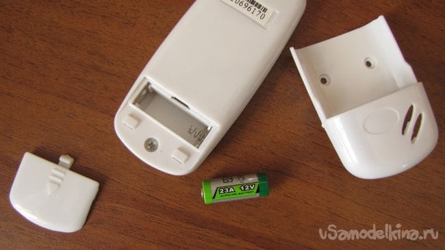 Пульт можно, при желании, закрепить на стену. Вернее не пульт, а его гнездо. Сам пульт остаётся переносным. В нём используется батарейка на 12 вольт. Потребление энергии пультом мизерное, так что этой батарейки хватит на длительное время.