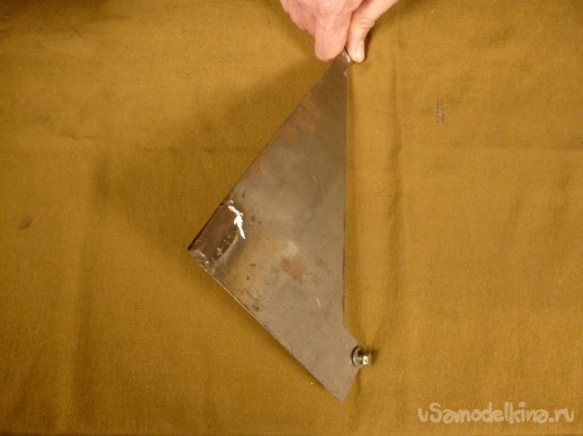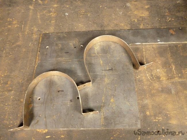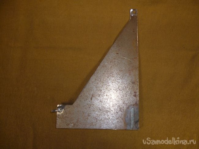 Чтобы закрепить противоположную сторону подошвы, из листового металла толщиной 1 мм. вырезаем вот такую деталь.
