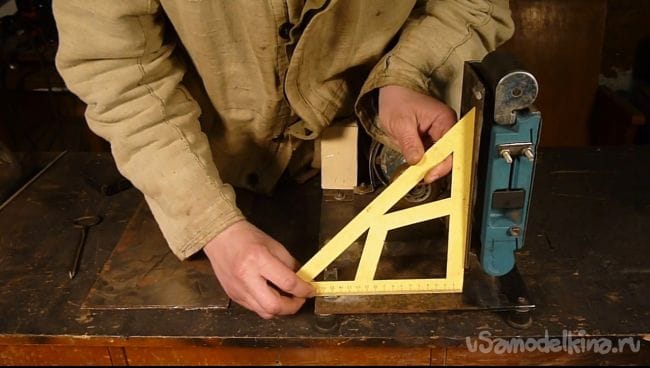 Теперь делаем упорный столик. У уголка 40 на 40 в одной из полок делаем вырез.