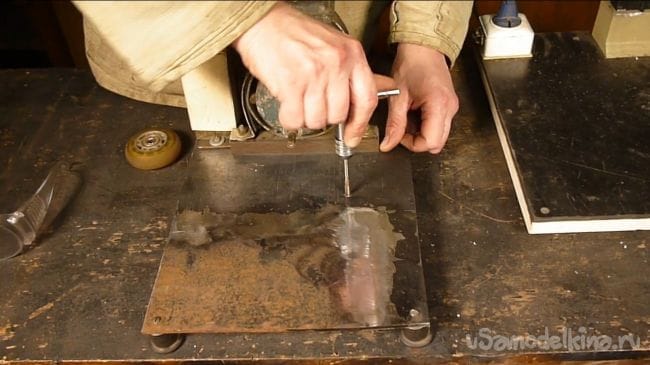 Размечаем и сверлим отверстия, для крышки столика используем текстолит толщиной 1 мм.