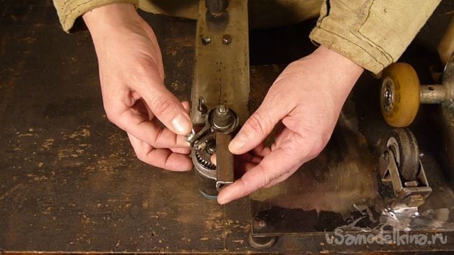 Снизу в станину вкручиваем болт. Этим болтом будем регулировать силу прижима роликов друг к другу.