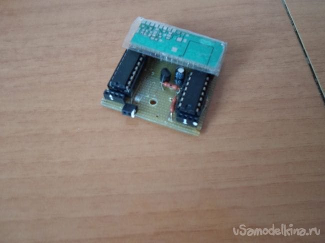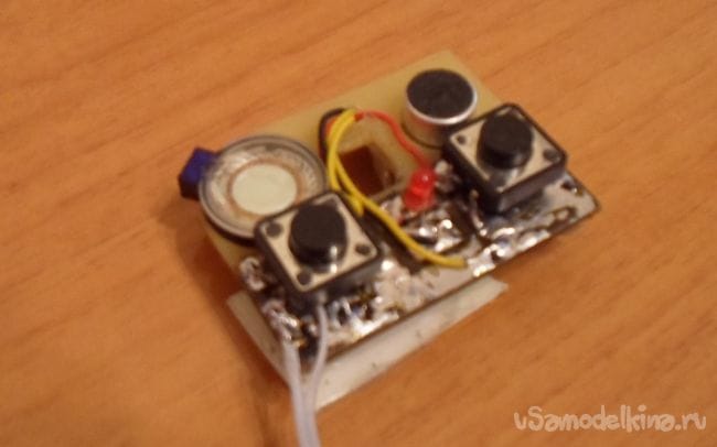 Электронная начинка голосового блока представлена на Фото 12. Фото 12.1 Данный модуль был изготовлен на базе готовой схемы, который был приобретён в радиомагазине. Общий вид кибер робота с установкой на него голосового блока представлен на Фото 13. Фото 13.1