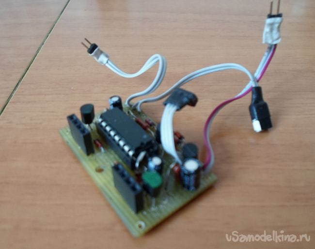 Данный датчик работает на отражении инфракрасного луча, невидимого для человеческого глаза, который он передает и принимает. Далее сигнал с этого датчика будет поступать на наш электронный блок управления моторами. (см. Фото 15.)