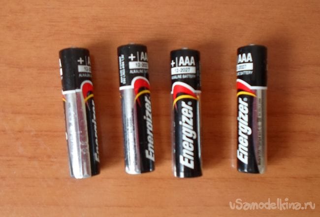 В процессе эксплуатации кибер робота большое внимание приходиться уделять элементам питания. Изначально мной было задумано питание кибер робота от обычных пальчиковых батареек типа ААА 1,5В 4шт. (см. Фото 25.)