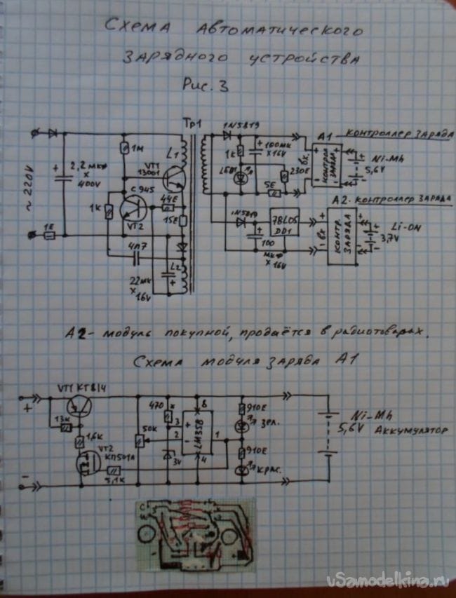 Но всё же аккумуляторные батарейки так же постепенно разряжались и необходимо было их каким то образом подзаряжать. В результате мной было разработано универсальное автоматическое зарядное устройство. Принципиальная схема такого зарядного устройства приведена на Рис. 3