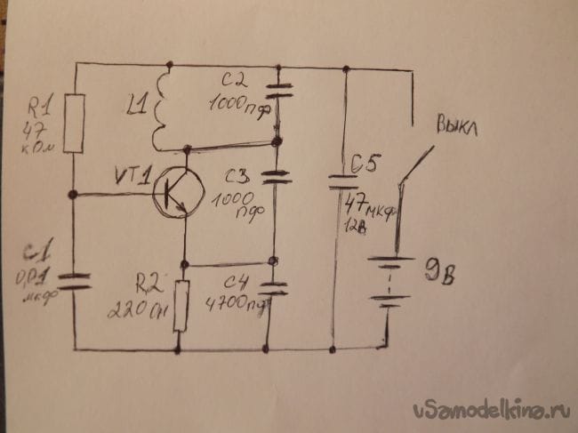 - транзистор VT1 любой маломощный высокочастотный,обратной проводимости...такие как КТ315 или КТ3102 с любым буквенным обозначением.