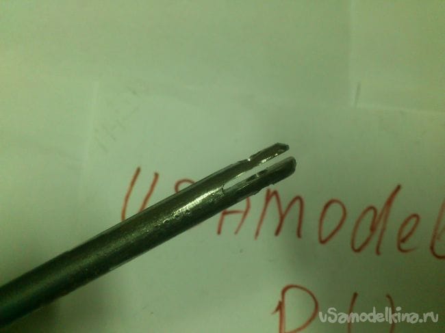 Затем верхнюю половину стержня (до прорези) я рассверлил сверлом, диаметром шесть миллиметров: