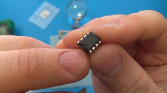 Очищаем обе платы от флюса, чтобы исключить нежелательные искажения, а также улучшить вид платы. Устанавливаем микросхему на плате, сопоставляем ключ на корпусе с тем, что расположен в гнезде на плате.