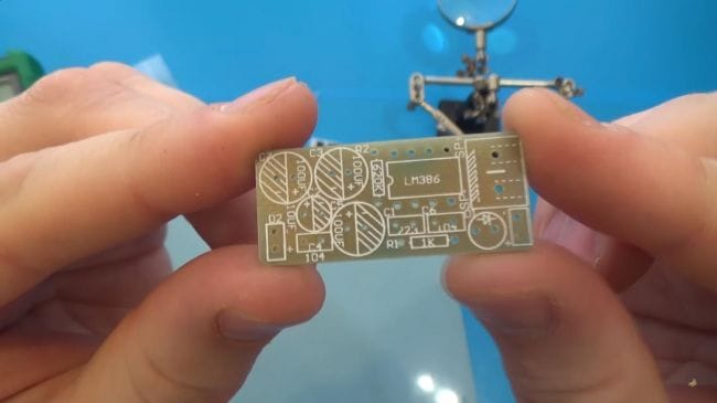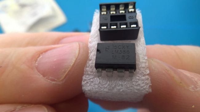 Компонентов тут немного больше, а также есть место под установку микросхемы, а именно LM 386, которая в свою очередь является усилителем.