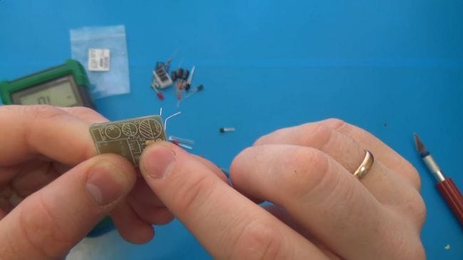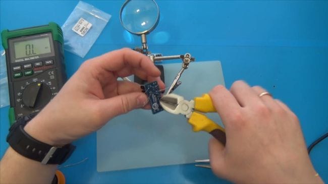 После того, как все компоненты припаяны, удаляем остатки выводов, воспользовавшись бокорезами.