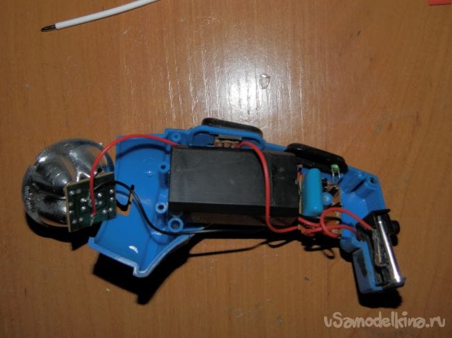 У меня батарейка была старая, поэтому я её убрал. К проводам припаял два контакта и подключил другую подходящую батарею (в моём случае 18650) ,я просто примотал два контакта изолентой соблюдая полярность.