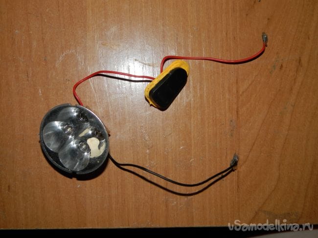 Потом укладываем в бокс батарейку, вклеиваем выключатель.