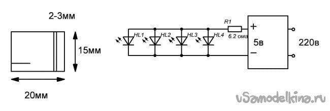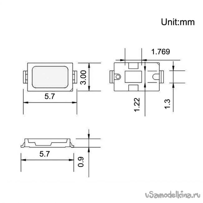 SMD 5730 мощностью 0.5 вт. 4 шт. Все они включены параллельно.