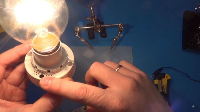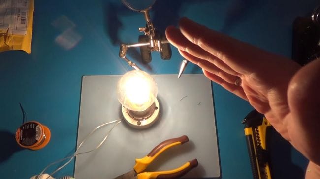 Осталось припаять провода для питания лампочки, а также для подключения сети 220 вольт.