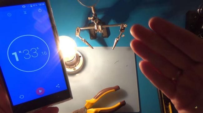 Вот и настало время проверить работу кит-набора. Подключаем наше устройство с лампочкой в розетку и тестируем.