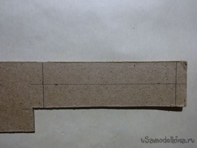 Шаг 1. Берем небольшой кусок ДВП и с помощью линейки и карандаша обозначаем размеры, чтоб получились две одинаковые части (для моих тисков это: 16 х 2.5 см), расчерчиваем.