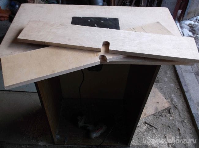 Для начала нужно определиться с размером рабочей поверхности. В интернете множество вариантов с абсолютно разными размерами и в данном случае основная проблема в материале, из которого изготовить стол. Это может быть толстая фанера, ЛДСП или подобный материал, главное чтоб поверхность была ровная и достаточно жесткая. В наличии после ремонта остался кусок березовой фанеры 1500 * 450 * 18 мм, из этого обрезка и изготовил основные элементы стола. В данном варианте рабочая поверхность имеет размеры 80*44 см. Из остальной части фанеры в дальнейшем изготовил параллельный упор и лифт для фрезера.
