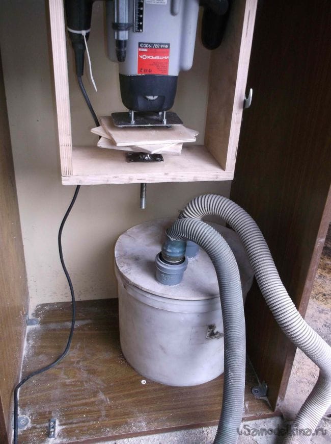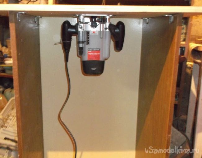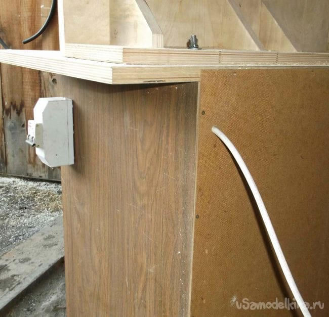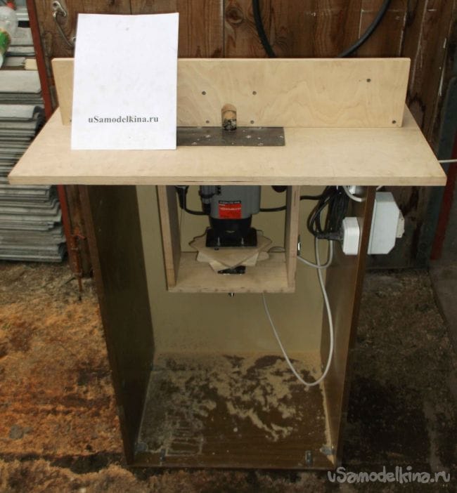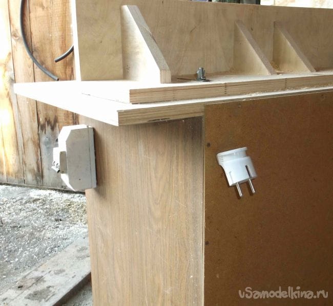 Кабель подключения фрезерного столика можно спрятать внутри стола и при необходимости вытянуть на нужную длину. Так как высота стола 90 см, а это уже высоковато, ножки решил не делать и ограничился небольшими набойками из плотной резины по углам основания.