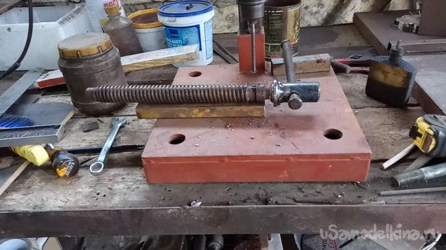 Время на сборку составило порядка двух рабочих дней, что считаю оправданным действием, учитывая какие мощные тиски получились. Также они не лишены плюсов, здесь можно зажать, например, клапан, так как под губками есть немного пространства для фиксации таких деталей, ну а подвижная передняя часть дает возможность зажать длинную деталь вплоть до пола, не упираясь в верстак, как это сделано в некоторых заводских тисках.