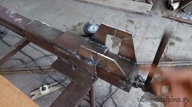 Пришло время обшить подвижную и неподвижную части, верхняя будет сделана из 12 мм , а боковина из 6 мм листа металла. Все хорошенько привариваем и зачищаем при помощи металлической щетки.