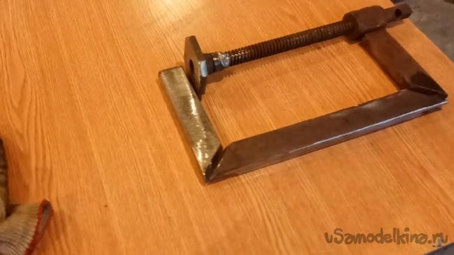 Привет всем любителям самоделок. Уверен, что те, кто хоть как-то связан с самоделками знает, что есть такой незаменимый инструмент, как струбцина. С его помощью можно зафиксировать необходимую деталь в процессе обработки или же прижать друг к другу склеиваемые поверхности, а также просверлить отверстие, прижав деталь к верстаку. Разновидностей данного инструмента много, но в этой статье я расскажу о том, как сделать именно G-образную струбцину своими руками из рессоры.