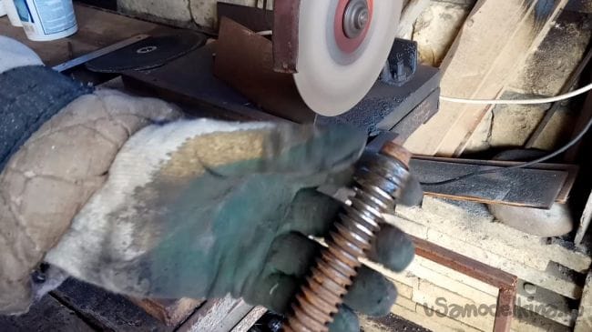 К одному из краев привариваем гайку с винтом, для этого также делаем небольшую канавку. После проварки всех стыков самоделку можно считать готовой.