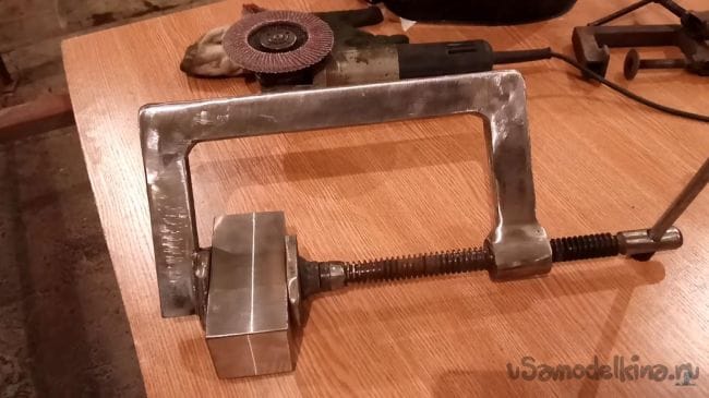 На этом у меня все, данная струбцина вышла довольно прочной, а вес получился порядка 5 кг из-за своих больших размеров.