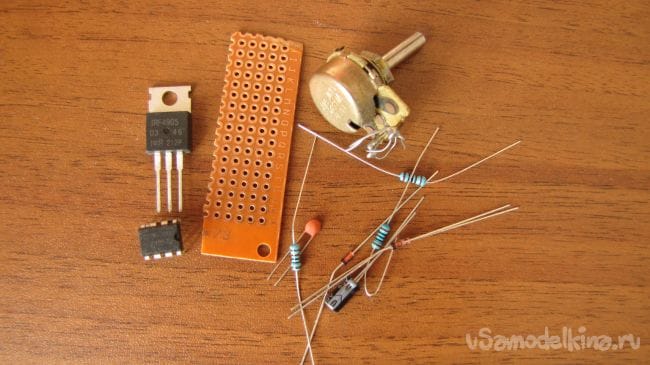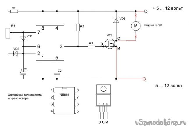 Для начала рассмотрим схему, которую нам предстоит собрать. Это схема шим регулятора на очень распространённой микросхеме NE555.