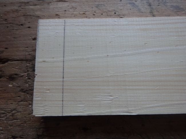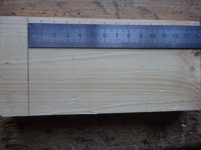 Строжим большую заготовку на фуговально-циркулярном станке (маленькая – рейка – была заранее обработана). Распиливаем до размера 7 см в ширину. Далее с помощью угольника и карандаша очерчиваем границы будущего бруска с длиной 16, 5 см, обусловленной тем, что ширина царг чаще бывает меньше двенадцати сантиметров. Отпиливаем ножовкой.