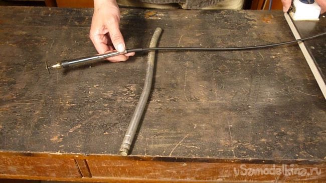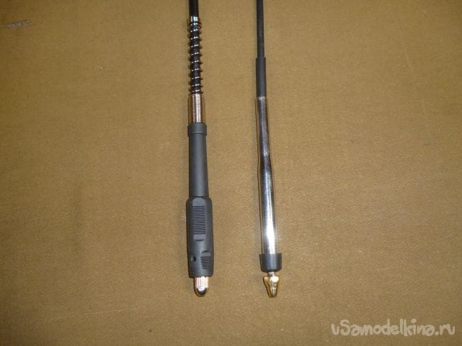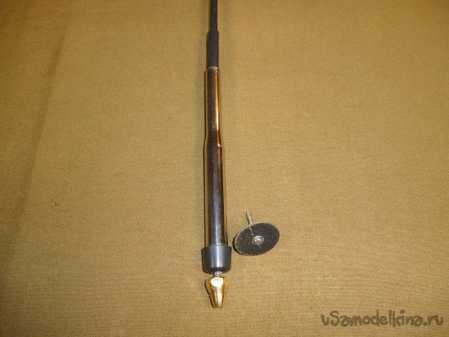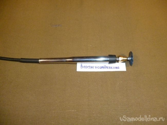 Он как нельзя лучше подошел для изготовления корпуса нашей насадки. С одной стороны его внутренний диаметр почти совпал с наружным диаметром подшипников, пришлось немного поработать наждачной бумагой, в другой плотно фиксируется наружная оплетка троса. В место перепада диаметров будет упираться подшипник, тем самым усилив прочность конструкции.