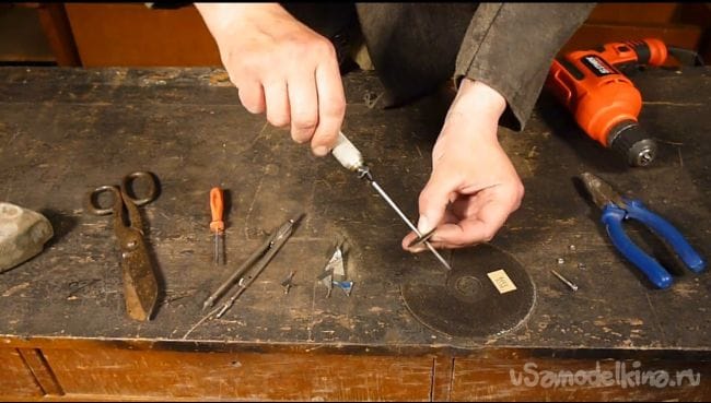 Осмотрев все запасы в мастерской нашли все необходимое для изготовления насадки на дрель.