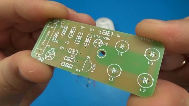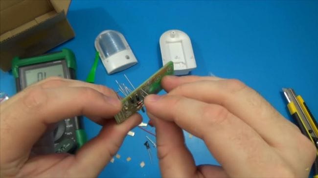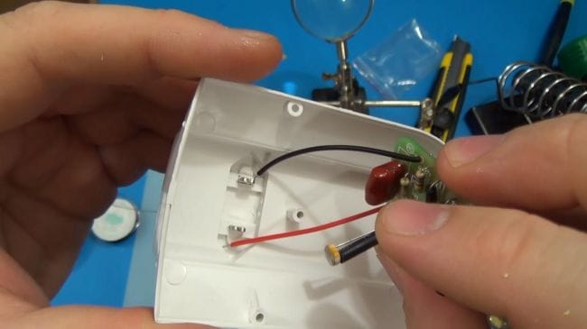 Примерив фоторезистор в корпусе, припаиваем его к плате, причем один из выводов лучше заизолировать, например, термоусадкой, также это послужить неким упором.