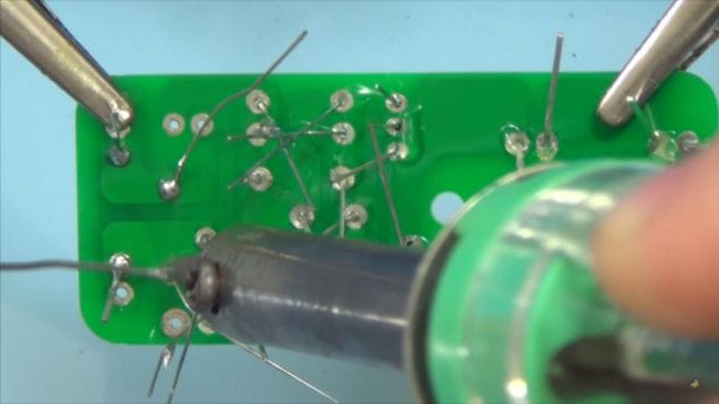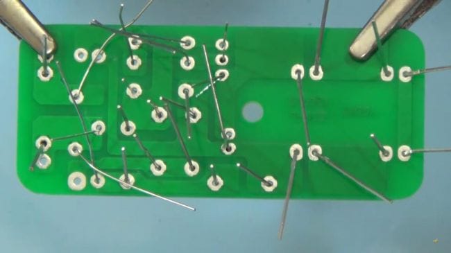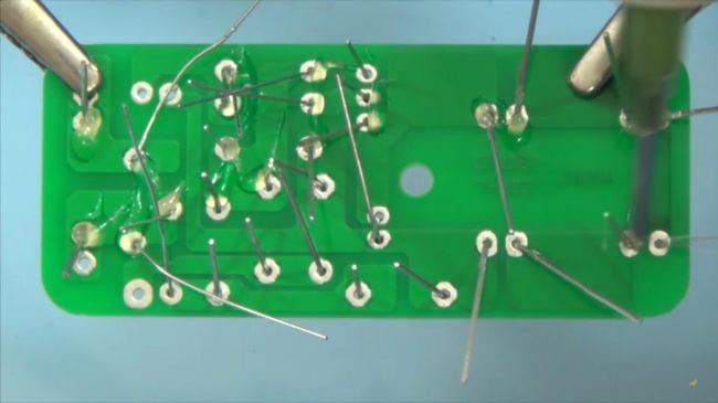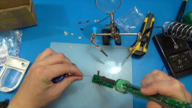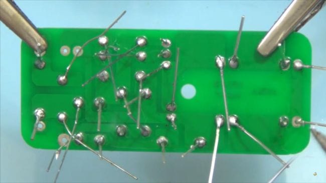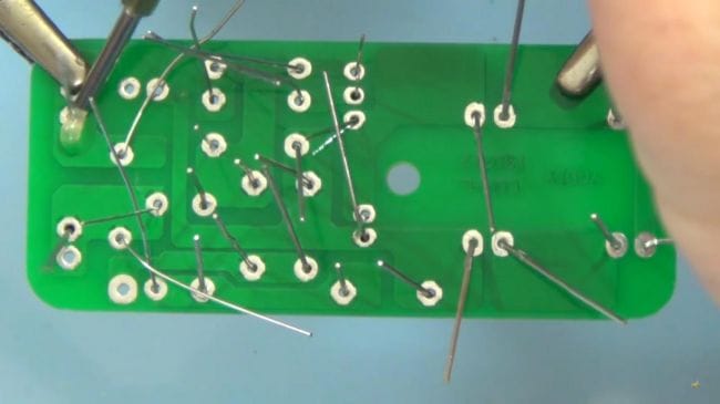 Понемногу подавая припой, припаиваем компоненты. Далее нужно удалить ненужные остатки выводов при помощи бокорезов.