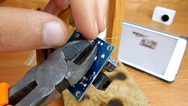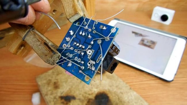При откусывании выводов при помощи бокорезов будьте аккуратны, так как одно неловкое движение и дорожки на плате нет. Далее очищаем плату от флюса, для этого хорошо подойдет ацетон или же бензин "калоша".